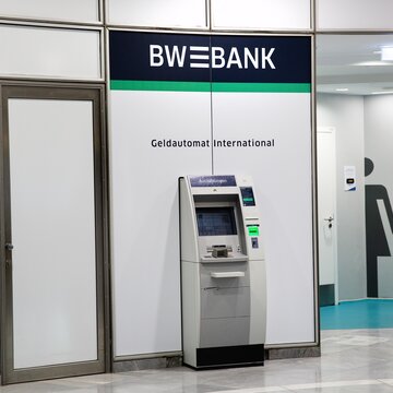 Bargeld vergessen? Am BW-Bank Automaten T1 hebst du rund um die Uhr Geld ab – auch nachts um 3:47 Uhr. Einfach, schnell und direkt vor dem Abflug verfügbar.